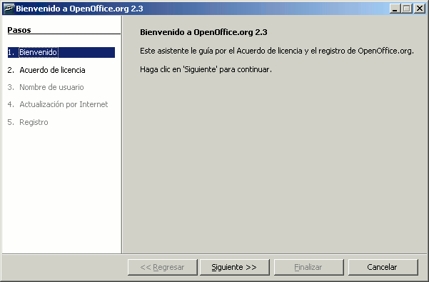 Una vez completado este paso se iniciará por primera vez OpenOffice.org y se lanzará la aplicación que habías elegido (Procesador de texto, Hoja de cálculo, Presentaciones, Dibujo).
