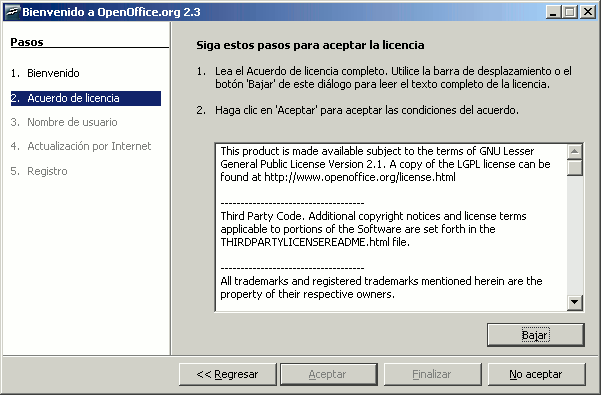 Como suele ser habitual es imprescindible aceptar la licencia para poder continuar.