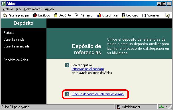 Basta seleccionar la opción señalada para que de manera automática se cree un depósito en el disco duro. Para rellenarlo de registros tenemos dos vías: