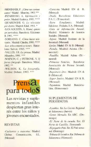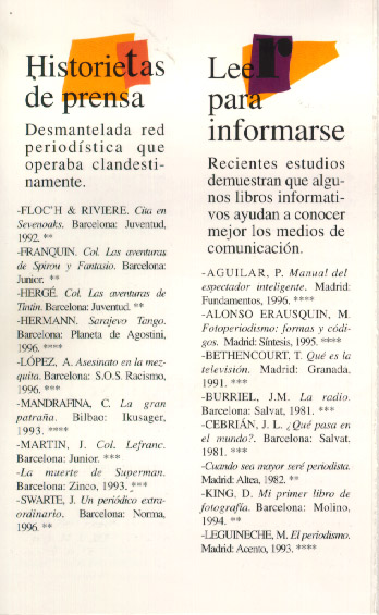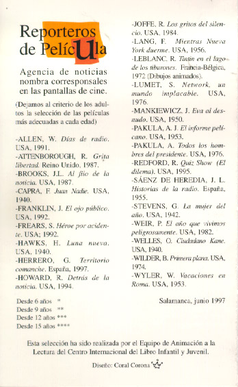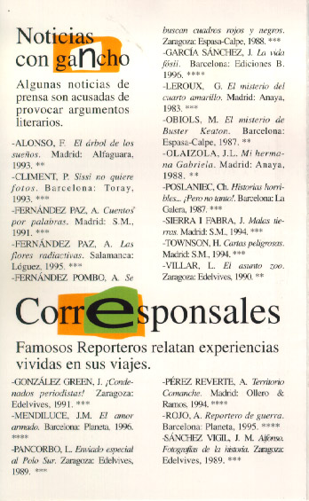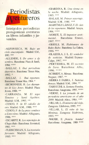 Aventuras en primera plana. Centro internacional del libro infantil y juvenil de la Fundación G. S. Ruipérez. Salamanca, 1997.