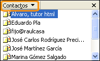 También tenemos otra forma rápida de acceder a la Libreta de direcciones para añadir una ficha: si no has cambiado el diseño general de la pantalla tendrás en la zona inferior izquierda un listado con los contactos disponibles en tu agenda. Si pulsas sobre el desplegable podrás elegir la opción Nuevo contacto... que te llevará a la pantalla de introducción de datos. Además la lista de contactos tiene una interesante funcionalidad que descubrirás con la siguiente práctica.