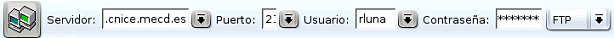 Tomemos pues los datos del usuario cuya dirección de correo es rluna@platea.cnice.mecd.es que, por lo que hemos visto hasta el momento, tendrá como nombre de usuario para el servicio de correo lo que aparece antes del signo @, esto es, rluna. En la mayoría de los servidores también será este el nombre de usuario para acceder al servicio de ftp, y así ocurre en el caso del CNICE. Si el nombre de usuario es el mismo que para el correo electrónico es lógico suponer que la contraseña será también la misma y así ocurre también en este caso.