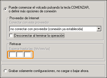 la posibilidad de iniciar la descarga o almacenar la configuración