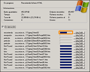 A partir de este momento se nos muestra una pantalla de progreso de la descarga. En el entorno Windows veremos unas barras de progreso que muestra la descarga de cada archivo, mientras que en el caso de Linux la página web se irá mostrando la cantidad de bytes descargados de cada archivo.