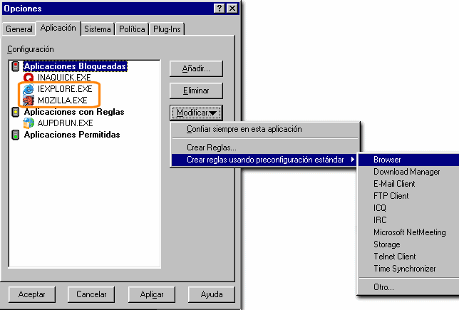 pasando a la categoría de Aplicaciones con reglas.