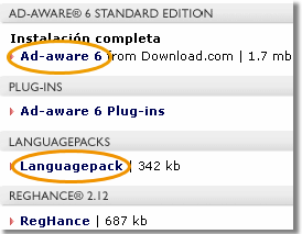 Selecciona el enlace Ad-aware (las versiones plus y profesional no son freeware)