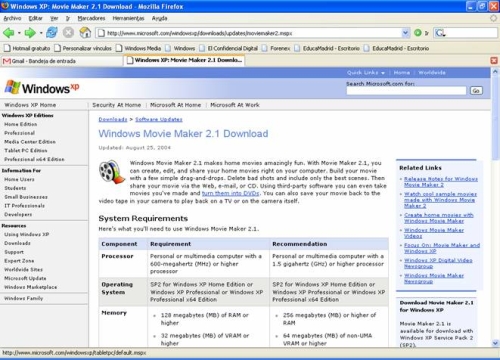 En el caso de que no se disponga del programa se puede descargar desde http://www.microsoft.com/windowsxp/downloads/updates/moviemaker2.mspx.