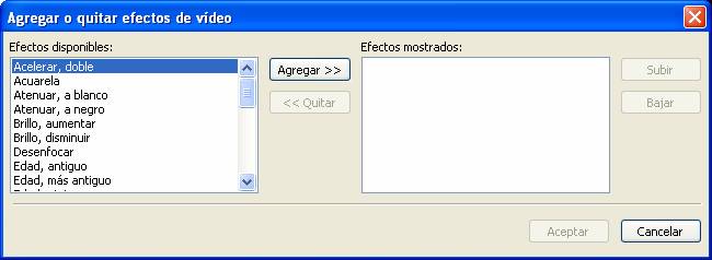 Al pulsar en Efectos de vídeo, aparece la ventana:
