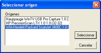 3. Sigue el orden de comandos siguiente: Archivo/ Adquirir/ Escáner/ Cámara y escoge tu escáner en la ventana Seleccionar origen, se ejecutará automáticamente el módulo de captura del escáner.