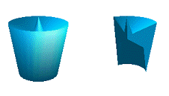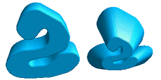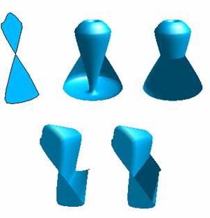Cuando revolucionamos o proyectamos una superficie que se entrecruza, el programa solo transforma en objeto 3D cerrado uno de los subcuerpos permaneciendo el resto como superficies abiertas. Si activamos la función de doble página, aparecerá todo el cuerpo cerrado.