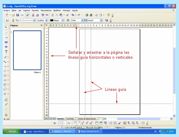 Para situar la líneas guía sobre la página de trabajo hay que seguir los pasos siguientes: