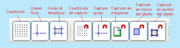 En esta barra se encuentran una serie de instrumentos que nos resultarán muy útiles para situar, con exactitud, los objetos en la página de trabajo.