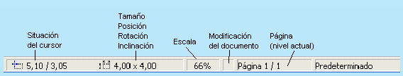 El primer campo de la Barra de Estado informa sobre la situación del cursor mediante las coordenadas horizontal y vertical.