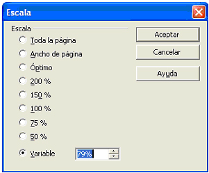 La barra de estado muestra la escala utilizada actualmente para la visualización de la página.