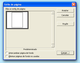 Pulsando este botón se abre el cuadro de diálogo Cargar estilo de página, desde donde se podrá seleccionar un nuevo estilo de página entre los ya existentes en el programa.
