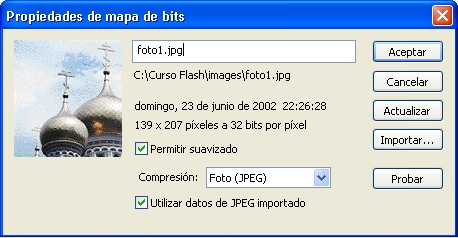 Utiliza los pasos indicados en el apartado “Importar una imagen desde Flash” con el archivo foto1.jpg que se encuentra en la subcarpeta Curso Flash \images. |