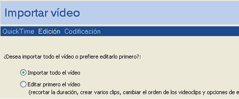 diálogo sólo te permitirá Importar todo el video. En este caso en