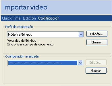| 8 | Perfil de Configuración Avanzada. En el asistente de importación de video, una vez que hemos definido el perfil de compresión, es necesario establecer el perfil de opciones avanzadas. También en este caso se puede reutilizar un perfil ya existente o bien crear uno nuevo definiendo los distintos valores del mismo. | |||||