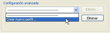 Nuevo Perfil de Configuración Avanzada. Despliega la lista y haz clic sobre la entrada Crear nuevo perfil ...