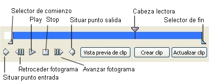 la barra de reproducción. Para situar el selector de comienzo o final en