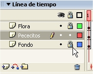 Clic a la derecha de un nombre de capa, en la columna del candado, para bloquear esa capa. Esto impide realizar ninguna modificación accidental sobre los objetos situados en este capa. Conviene utilizar esta opción cuando se emplean varias capas de denso contenido. |
