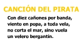 Clic sobre el escenario para comenzar a escribir un cuadro de texto estático con los atributos de carácter definidos previamente: “Canción del pirata”. |