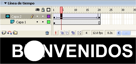el fotograma nº 20 de la capa máscara. Clic sobre este fotograma. Una