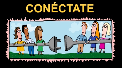 Elige la herramienta Texto. En el Inspector de propiedades, define como fuente Arial, tamaño 36 y color #FFCC33 (hexadecimal de un color amarillo-anaranjado). Clic en la parte superior del escenario para escribir el texto en mayúsculas “CONÉCTATE”. |