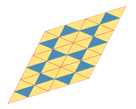 • En el caso de los triángulos de la propuesta de construcción, ¿se teselaría el plano reflejando por puntos que no estuviesen justo en el centro de cada lado, sino cuya razón simple con respecto a los extremos del lado fuese distinta a 0.5? ¿O se formarán "huecos" hexagonales?