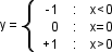 {r@{\quad:\quad}l} -1&x<0\\ 0&x=0\\+1&x>0