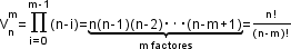 V_n^m=\prod_{i=0}^{m-1}(n-i)=
