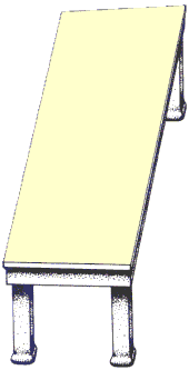 En la construcción las superficies amarilla y verde de las mesas son congruentes: tienen la misma forma y dimensiones. Sin embargo, percibimos la superficie amarilla como “menos ancha y más larga” que la verde. Una rotación dinámica nos puede sacar de nuestro error.