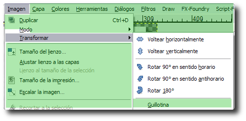 A las herramientas de transformación que modifican la imagen completa se accede desde la barra de Menús: