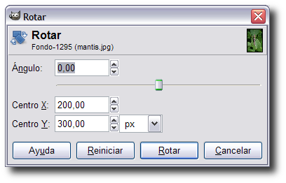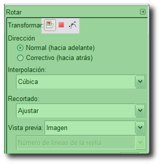 La rejilla que aparece nos muestra la posición final de la capa o selección que se obtendrá tras hacer clic en el botón Rotar.