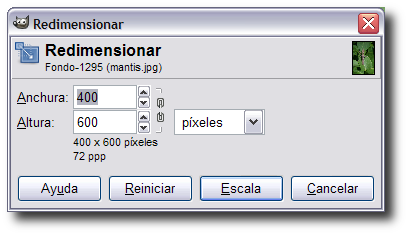 Al hacer clic sobre la imagen aparece el cuadro de diálogo correspondiente, que nos permite seleccionar la escala que queramos hacer: