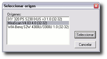 ventana con los escáners y cámaras que tengamos conectados