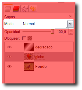 a realizar un ejercicio partiendo de una imagen preparada, está compuesta por tres capas que puedes ver a continuación, se llaman "degradado", "globo" y "Fondo". Puedes