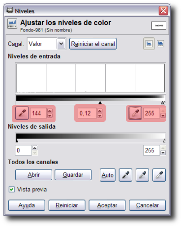 derecho sobre la imagen y elegimos Colores --> Niveles. Esta herramienta nos permite disminuir el número de grises que tiene una imagen. En la ventana que