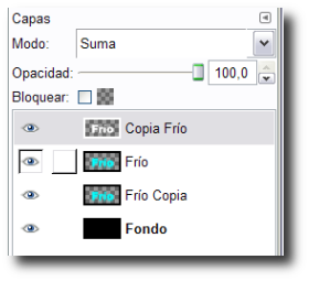 - Duplicamos la capa "Frío" con las características obtenidas y a la nueva capa la llamamos "Frío Copia". Aplicamos a esta última el modo de combinación Valor, para obtener lo siguiente:
