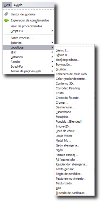 Scheme que hacen que GIMP cree un determinado efecto. Accedemos a ellos