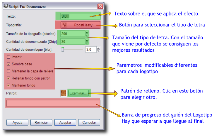 Script-Fu, en el que podemos elegir el tipo y tamaño de la
