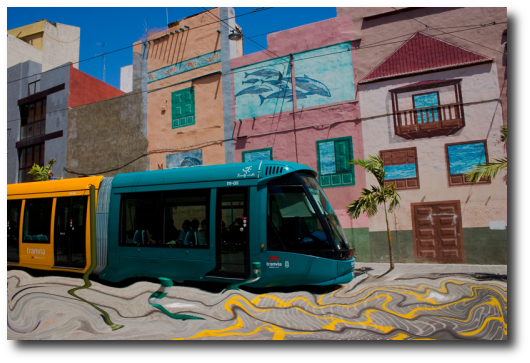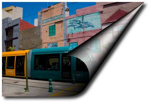 - Selecciona a mano alzada toda la parte correspondiente a la parte inferior (sin llegar al tranvía) "unidad06_03.jpg". Aplica a esa zona el filtro