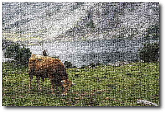 1. Aplicar lienzo Añade un mapa de textura suave a la imagen. La simulación nos muestra la imagen como si hubiera sido pintada sobre un lienzo del que podemos elegir la textura.