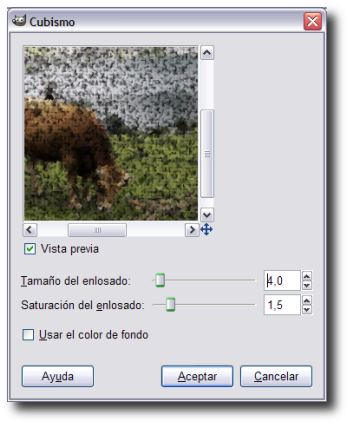 3. Cubismo Convierte una imagen en una simulación de pintura cubista, es decir, la muestra de una forma abstracta. Las opciones de este filtro se detallan a continuación.