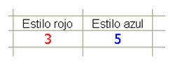 - En primer lugar se deben definir tantos estilos como modalidades deseemos que tenga la apariencia de los resultados. En nuestro ejemplo definiríamos el estilo rojo como aquel en el que la fuente aparezca de ese color y lo mismo haríamos con el estilo azul. Consulta la Teoría de esta sesión sobre cómo hacerlo.