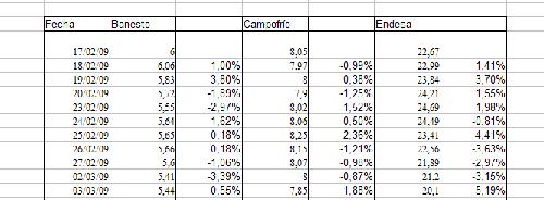 Haz lo mismo con Banesto y con Endesa. Las primeras filas deberán quedarte así: