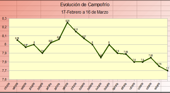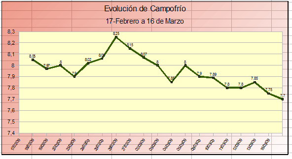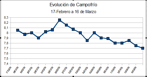 Con esto el inversor sabe que Campofrío es el que ha bajado menos. Visto este resultado, desea estudiar esa acción desde el punto de vista de evolución temporal mediante un gráfico lineal, para ver las subidas y bajadas de valor que ha experimentado.