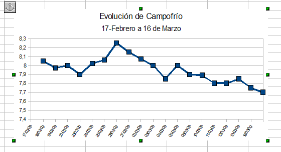 Ahora intentaremos moverlo a otra parte de la hoja y cambiarle de tamaño. Para ello, pincha con el ratón fuera del gráfico y después otra vez dentro. De esa forma el contorno habrá cambiado a una línea con cuadraditos verdes.
