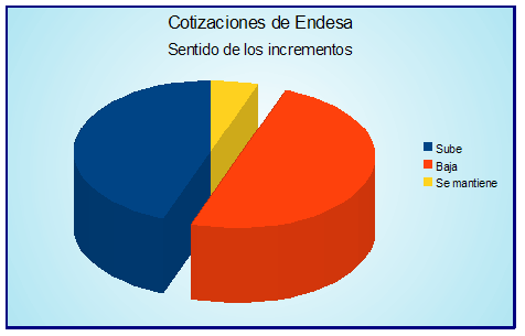 Para practicar con tablas y gráficos nos basaremos en un ejemplo imaginado: un inversor tiene acciones de tres compañías: Campofrío, Banesto y Endesa. Desea tomar alguna decisión sobre ellas antes de Abril y sigue sus cotizaciones a lo largo de varios días de Febrero y Marzo. En el modelo bolsa.ods del CD puedes consultar sus datos. Haz una copia de él en una carpeta tuya para poder trabajar con comodidad.