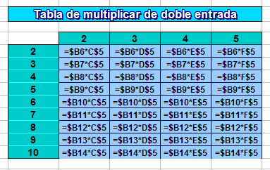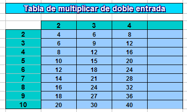 Abre el modelo tabla.ods, que como ves, contiene una tabla de multiplicar de doble entrada incompleta: